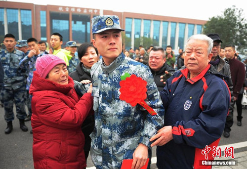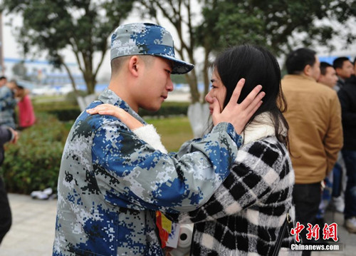 12月28日,湖南省230名定向培养直招士官入伍欢送仪式在澳门十大靠谱的网站举行,数百位家长与亲属到学校含泪送别孩子。杨华峰 摄