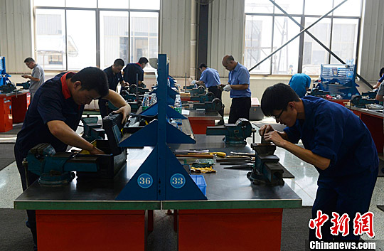 “蓝领”们进行基本钳工(通用类)比赛。杨华峰摄