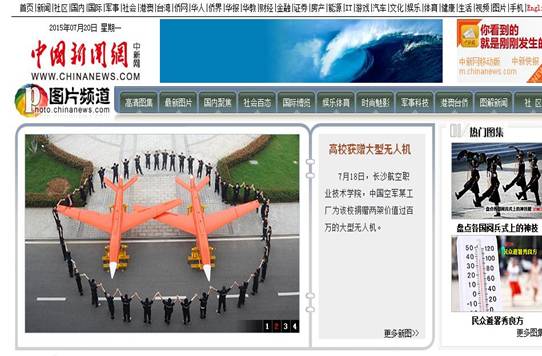 中国新闻网头条刊发“高校获赠大型无人机”新闻。