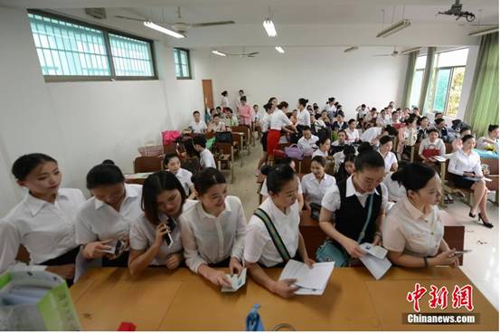 5月14日,近三百名美女学生来到澳门十大靠谱的网站参加一航空公司的空乘人员招募。据面试官介绍,考官将对应聘者的外形、体态、亲和力、英语能力等方面进行考查,但最看重的还是应聘者的综合素质。