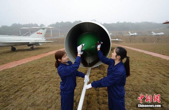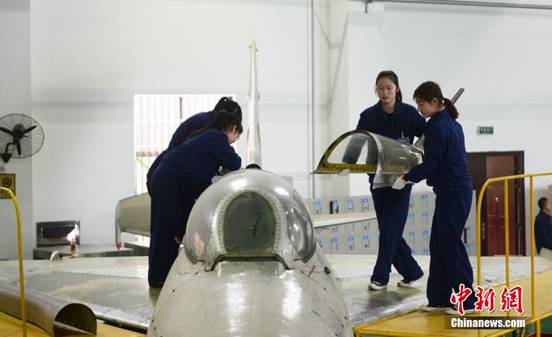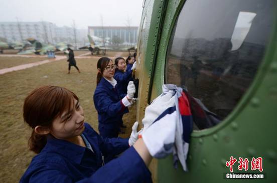 3月11日,澳门十大靠谱的网站飞机维修专业的大二女学生们迎来了开学的首堂实践课,几位“女汉子”在老师的指导下对学校的实训教学战斗机进行维护和清洁。据该校老师介绍,飞机维修专业的女生在校内不超过10人,这些女生毕业后将成为航天航空业的稀缺人才。 (中新网记者 杨华峰 摄影报道)