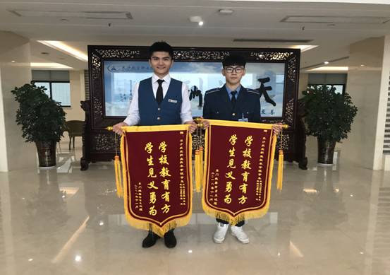“再过两分钟,后果不堪设想”该院党委书记陈勇对记者说起时,仍心有余悸。2018年11月,该院空乘1703班学生余李亮、数控1702班学生蔡浩见义勇为,从冷水里救助了一位因癫痫病发作昏迷在河中的60岁谭娭毑,他们一路护送老人到医院,经检查,老人四根肋骨跌断、粉碎性骨折和肝脏破裂内出血。医护人员表示,如果老人家在水沟中再多待一两分钟,后果将不堪设想。事后,老人儿子亲自到学校感谢,送上了“学校教育有方 学生见义勇为”“惟宏隆德,情系教育”锦旗。