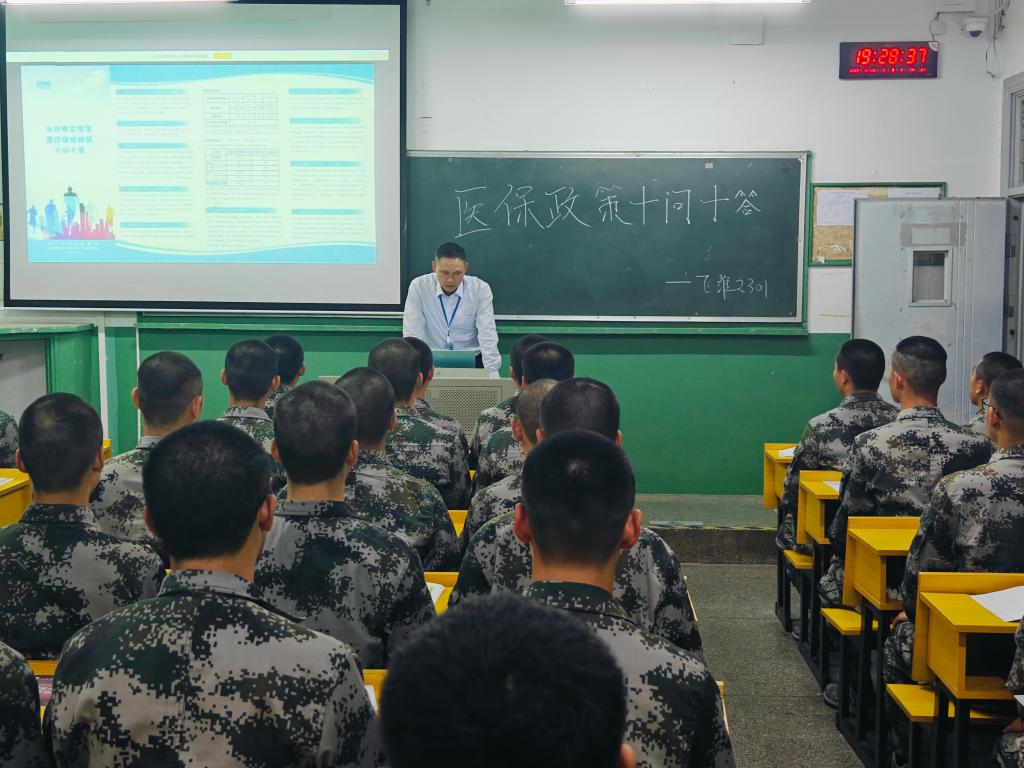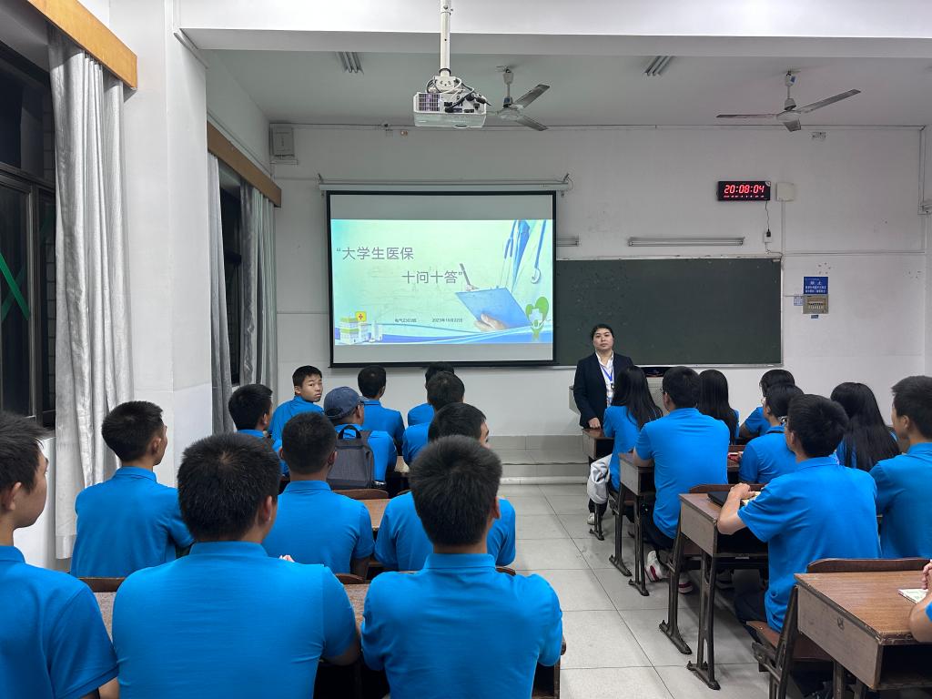 卫生所医务人员在活动现场张贴长沙市大学生医保宣传海报,为同学们发放《长沙市大学生医疗保险政策十问十答》宣传折页,就同学们关心的关于大学生医保参保缴费、医保住院待遇、门诊统筹待遇以及异地就医待遇享受等方面的问题做出详细解答,向同学们介绍了长沙航院就医服务、医保报销和医疗补助相关政策。各二级学院也积极组织主题班会,辅导员认真宣贯“长沙市大学生医保政策十问十答”相关内容,确保同学们知晓大学生医保相关内容和就医相关政策。