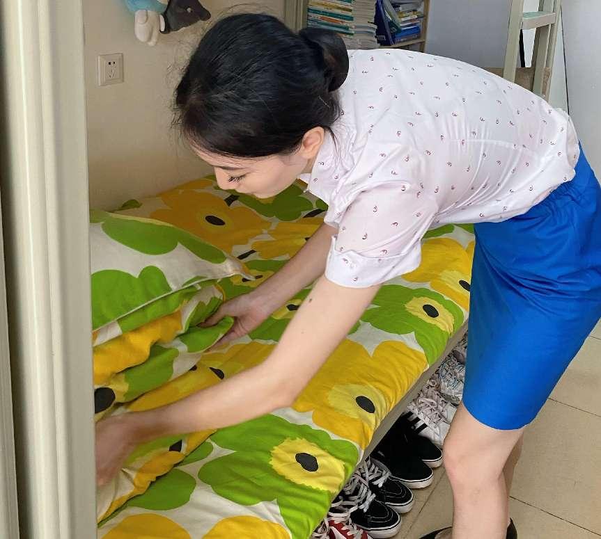 空乘专业同学整理被子