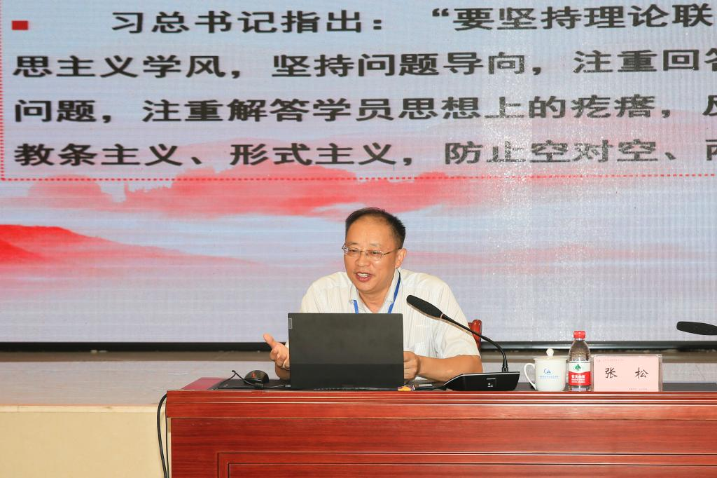 8月30日上午,我院2021年中层以上干部暑假集训班在跳马校区协同创新中心会议厅正式开班。31日上午,我院纪委书记张松以“学习百年党史,大力弘扬党的优良传统和作风”为题,面向全体党员干部上了一堂党风党纪专题党课。我院中层以上干部(含后备)70余人参加。讲座由学院党委副书记蔡海鹏主持。